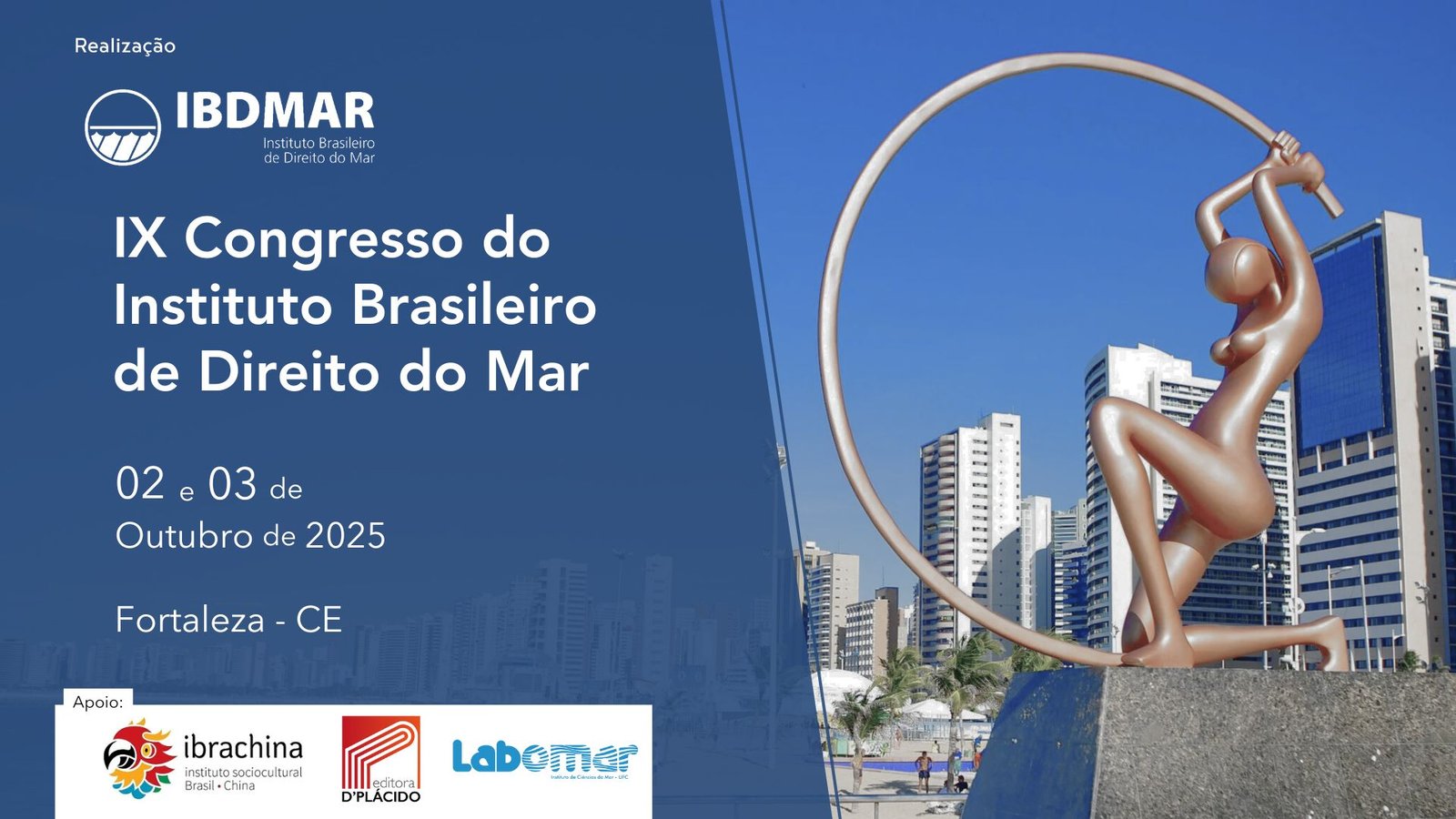 A Comissão Organizadora do IX Congresso do IBDMAR (Instituto Brasileiro de Direito do Mar) torna pública a chamada para submissão e apresentação de trabalhos no evento que ocorrerá no Instituto de Ciências do Mar (Labomar) da Universidade Federal do Ceará (UFC), em Fortaleza/CE, entre 02 e 03 de outubro de 2025.